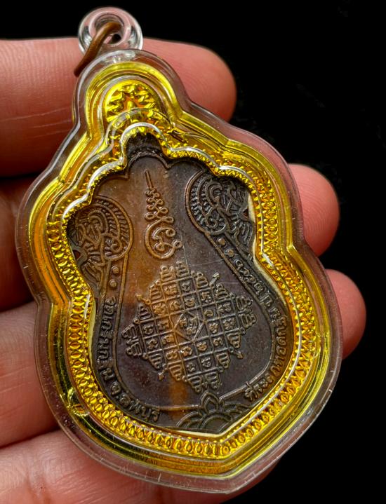 เหรียญเสมาที่ระลึกทอดกฐิน ปี 2546 หลวงพ่อเพี้ยน วัดเกริ่นกฐิน (เหรียญประสบการณ์ 5 แชะ) เนื้อทองแดงรมดำ
