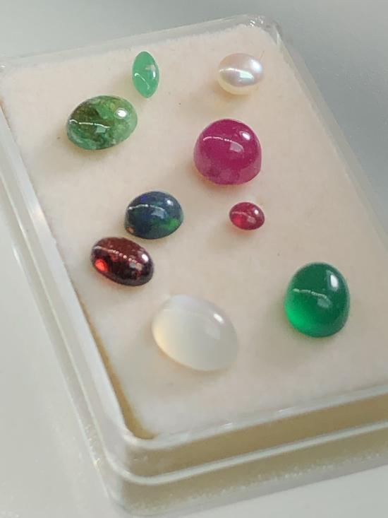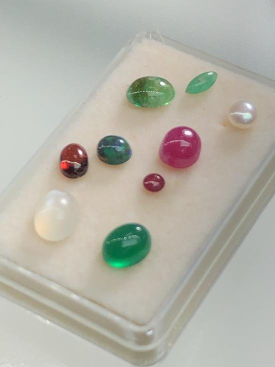อัญมณีแกะจากสินหลุดจำนำ ทับทิม มรกต โมรา ไข่มุก มุกดาหาร แบล็คโอปอล์ โกเมน น้ำหนักรวม 10.7 กะรัต (แท้ทุกเม็ด) |