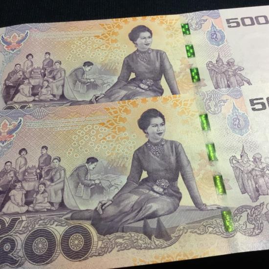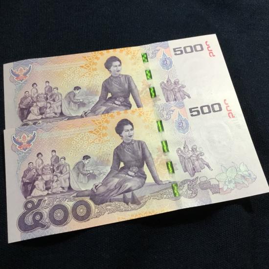 ธนบัตรที่ระลึก 500 บาท สมเด็จพระนางเจ้าพระบรมราชินีนาถในรัชกาลที่ 9 เฉลิมพระชนมพรรษาครบ 7 รอบ **เลขเรียง**รวม 2 ฉบับ ไม่ผ่านใช้