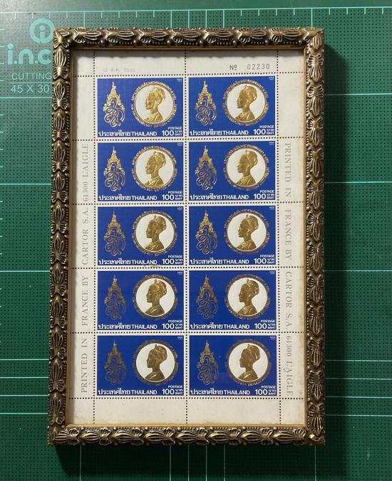 สแตมป์ทอง สมเด็จพระนางเจ้าสิริกิติ์ พระบรมราชินีนาทฯ 12ส.ค.2535 ใส่กรอบเดิม.