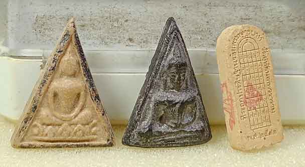 พระสมเด็จนางพญา วัดพระพุทธบาท จ.สระบุรี เนื้อผงน้ำมัน ปี 2518 + พระนางพญาหลังอุ +ผงรอยพระพุทธบาท จำลอง รุ่นเฉลิมพระบาท วัดสุทัศนเทพวราราม ปี41 |