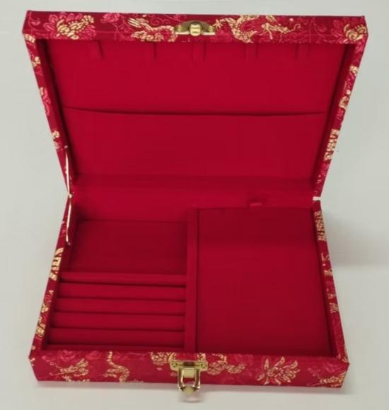 กล่องใส่เครื่องประดับ หุ้มผ้าไหมสีแดง |