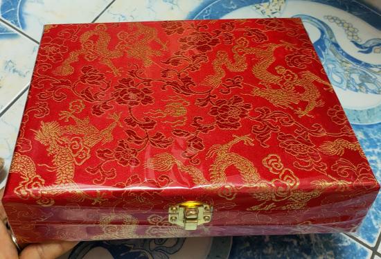 กล่องเครื่องประดับ หุ้มผ้าไหมสีแดงลายมังกรและหงษ์