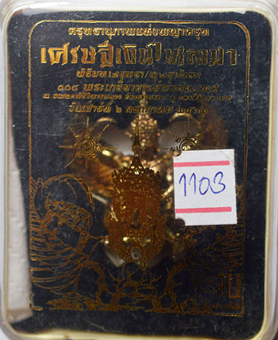 พิมพ์เล็ก พญาครุฑเศรษฐีเงินไหลมา ปี 2562 พุทธาภิเษก โดยเกจิ108 รูป ณ.วิหารหลวง วัดพระมหาธาตุวรมหาวิหาร นครศรีธรรมราช เนื้อมหาชนวนทองล้นเบ้า เลข 1103 |