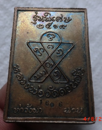 เหรียญหลวงพ่อวัดดอนตัน ปี 2519 พิมพ์ซุ้มตื้น หมายเลข 1606 จ.น่าน เนื้อทองแดงสวยๆ พร้อมบัตร ครับ