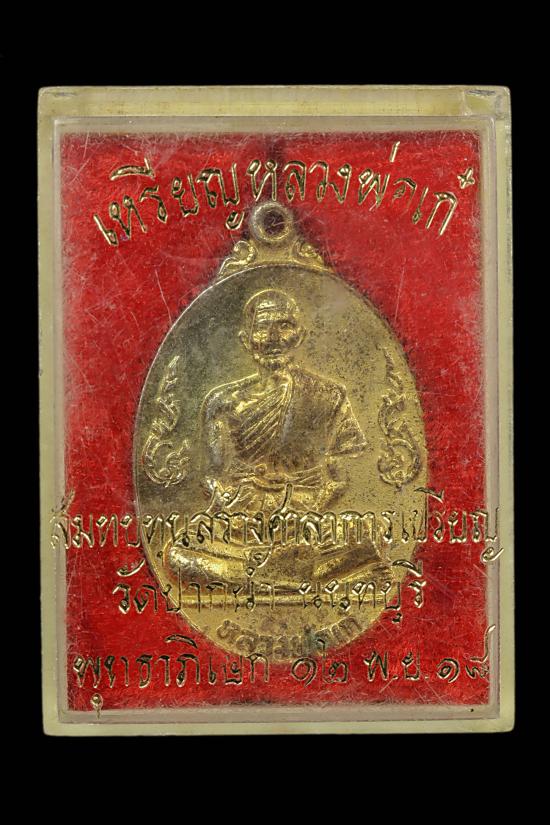 เหรียญนักกล้าม หลวงพ่อเก๋ วัดปากน้ำ นนทบุรี ปี 18 เนื้อกะไหล่ทอง พร้อมกล่องเดิม แดงวัดใจ 120 |
