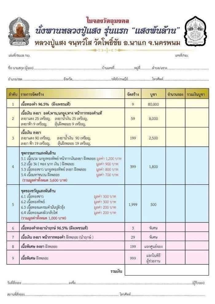 เหรียญนั่งพานรุ่นแรก ลป.แสง วัดโพธิ์ชัย นครพนม รุ่นแสงพันล้าน ชุดของขวัญ 4 เหรียญ(ตามภาพ) ราคาจองชุดละ 500 บาท วันนี้วัดใจเคาะแรกแดงครับชุดที่6 |