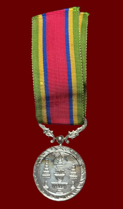 เหรียญเครื่องราชอิสริยาภรณ์ เหรียญช้างเผือกหลังพระมหาพิชัยมงกุฎ ( ส.พ.ช.ม.จ.๕ ) เนื้อเงิน กองกษาปณ์ พร้อมแพรแถบ |