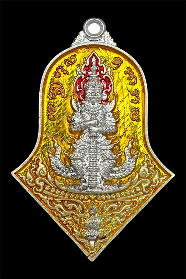 เหรียญจำปีใหญ่ ท้าวเวสสุวรรณ รุ่น เทวาประทานทรัพย์สินเจริญดี ปี 2565 พุทธภิเษก วัดจุฬามณี จ.สมุทรสงคราม เนื้อเงิน ลงยาเหลือง หมายเลข 18 รับประกันพระแท้