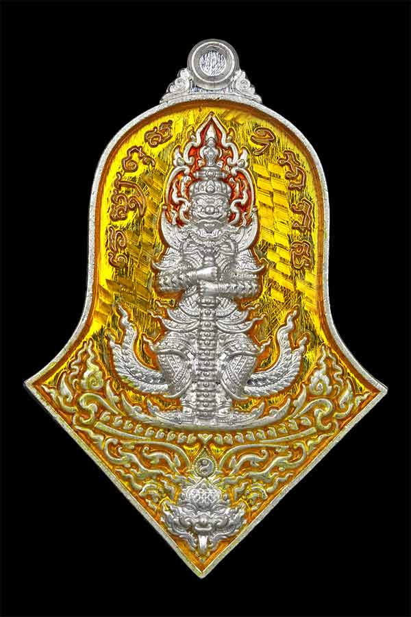 เหรียญจำปีใหญ่ ท้าวเวสสุวรรณ รุ่น เทวาประทานทรัพย์สินเจริญดี ปี 2565 พุทธภิเษก วัดจุฬามณี จ.สมุทรสงคราม เนื้อเงิน ลงยาเหลือง หมายเลข 96 รับประกันพระแท้