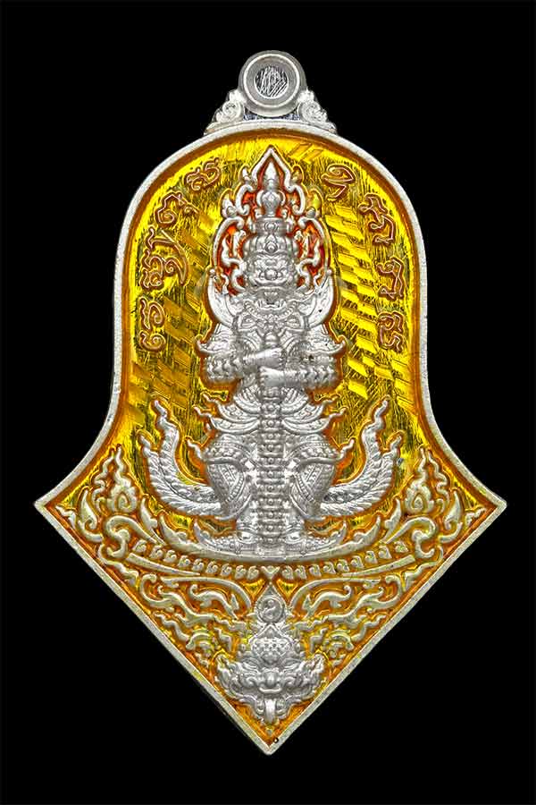 เหรียญจำปีใหญ่ ท้าวเวสสุวรรณ รุ่น เทวาประทานทรัพย์สินเจริญดี ปี 2565 พุทธภิเษก วัดจุฬามณี จ.สมุทรสงคราม เนื้อเงิน ลงยาเหลือง หมายเลข 94 รับประกันพระแท้
