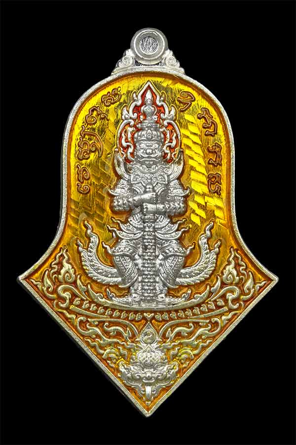 เหรียญจำปีใหญ่ ท้าวเวสสุวรรณ รุ่น เทวาประทานทรัพย์สินเจริญดี ปี 2565 พุทธภิเษก วัดจุฬามณี จ.สมุทรสงคราม เนื้อเงิน ลงยาเหลือง หมายเลข 89 รับประกันพระแท้