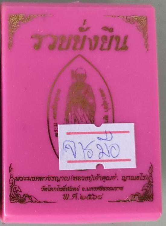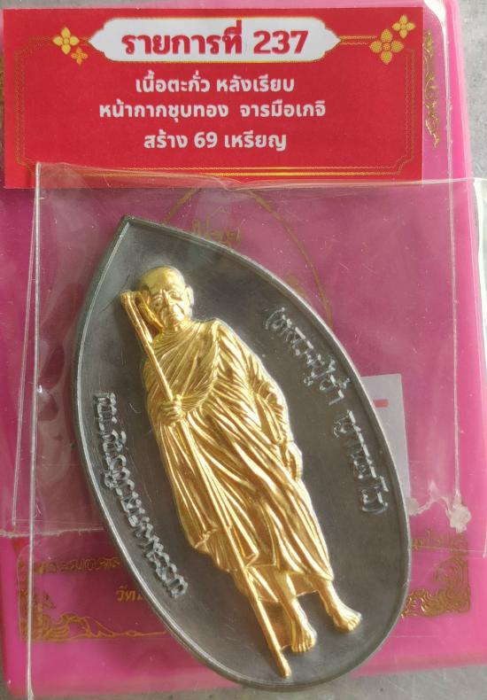 เหรียญยืน รุ่นรวยยังยืน พระมงคลวชิรญาณ(พ่อท่านอ่ำ ญาณธโร) ปัจจุบันอายุุ103ปี วัดโคกโพธิ์สถิตย์ ลานสกา จ.นครศรีฯ เนื้อตะกั่ว หน้ากากชุบทอง หลังเรียบจารมือเกจิ หมายเลข 35 พร้อมกล่อง สร้าง69องค์ |