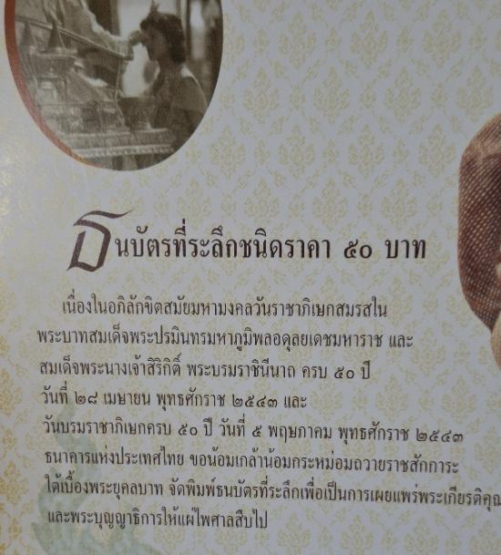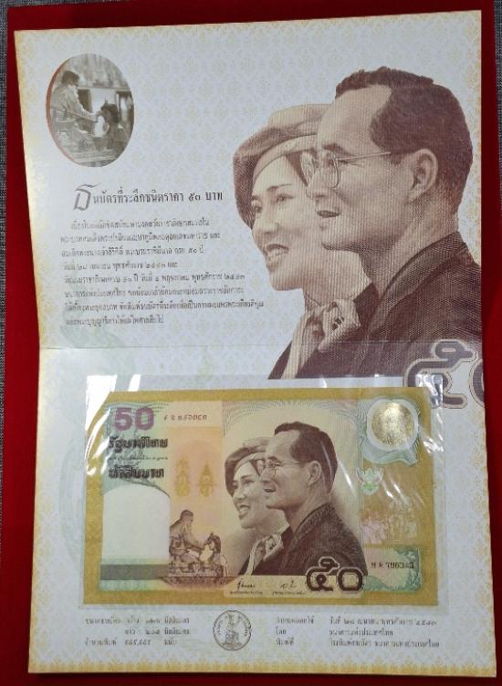 ธนบัตร ในหลวงร.9 - พระราชินี ราชาภิเษกสมรส ครบ50ปี ปี2543 (ธนบัตร50บาท แบงค์50บาท สภาพสวยสมบูรณ์ นิยม หายาก) |