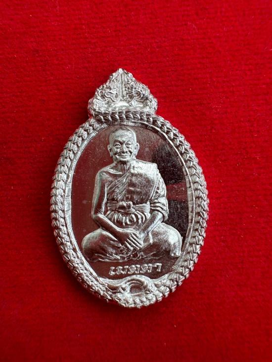 เหรียญเมตตาหลวงพ่อจรัญ วัดอัมพวันปี 2555 เนื้อเงิน หมายเลข 1362 กล่องเดิม |