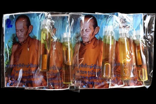 รายละเอียด ชุด 5 ขวด...น้ำมันมหาเสน่ห์พรายเนื้อหอม ปี 2557 พระครูน้อย วัดชัยมงคล จ.สุพรรณบุรี พร้อมซองรูปเดิมจากวัด สภาพพระตามรูปที่ลงทุกประการ