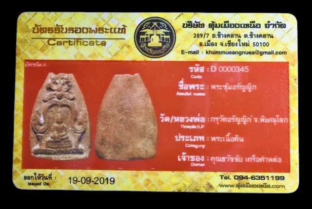 พระซุ้มอรัญญิก กรุวัดอรัญญิก เนื้อดิน จังหวัดพิษณุโลก พร้อมบัตร