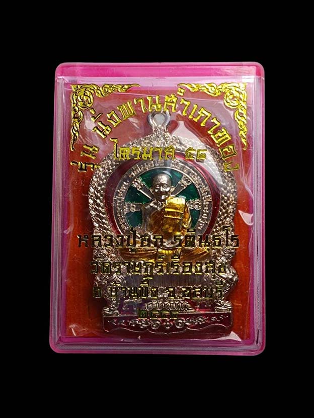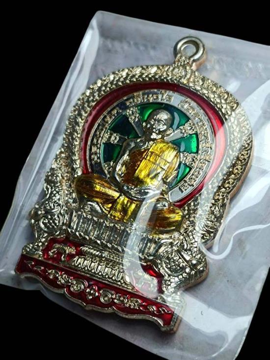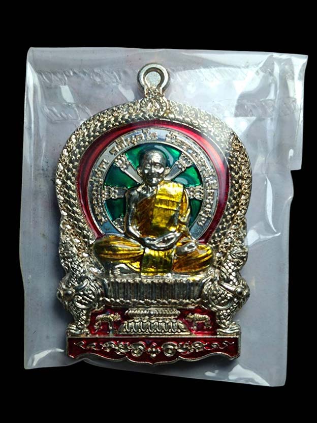 เหรียญนั่งพานสำเภาทอง หลวงปู่ฮก วัดราษฏร์เรืองสุข จ.ชลบุรี ปี 2558 เนื้ออาบเงินลงยาสี ตอกโค้ต หมายเลข 1661 ซีลเดิม พร้อมกล่อง ผิวสวยๆ |