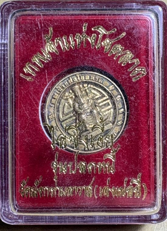 เหรียญเทพเจ้าไฉ่ซิงเอี้ย เทพเจ้าแห่งโชคลาภ เนื้อโลหะเคลือบทองคำ หลังตอกโค๊ดก้อนทอง รุ่นปลดหนี้ วัดเล่งเน่ยยี่ ปี 2545 พร้อมกล่องเดิมจากวัด ไม่ผ่านใช้ |