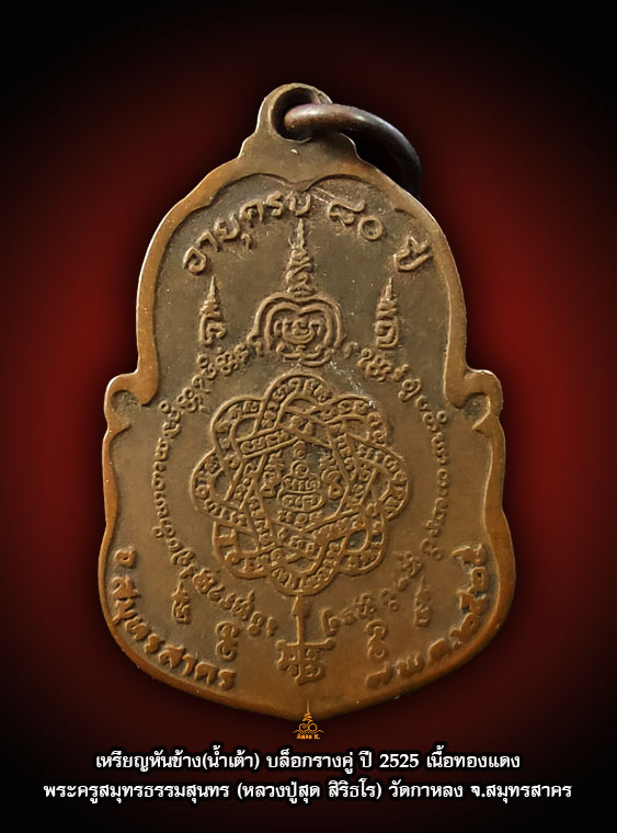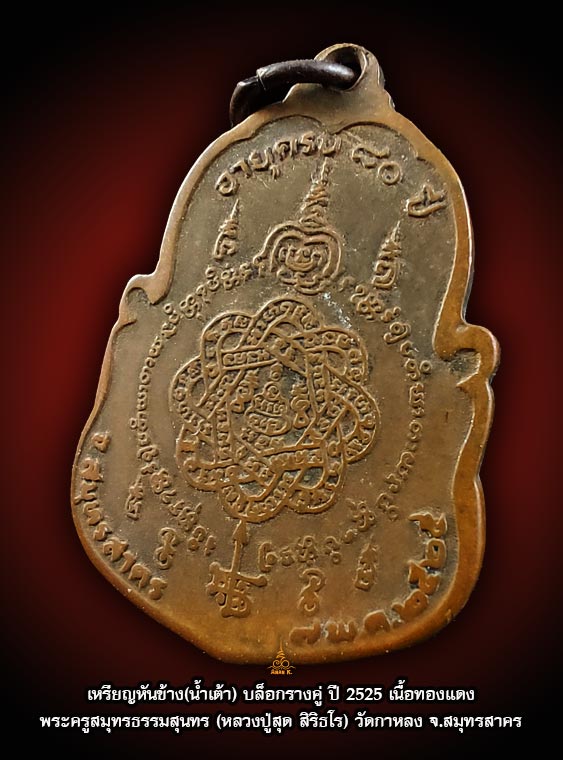 เหรียญหันข้าง (น้ำเต้า) อายุครบ ๘๐ปี หลวงพ่อสุด วัดกาหลง สมุทรสาคร ปี๒๕๒๕ เนื้อทองแดง