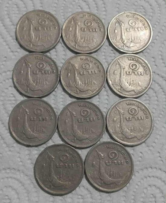 เหรียญ 1 บาท หลังเรือสุพรรณหงษ์ ""ภู่สั้น""พ.ศ.2520 ในสมัยรัชกาลที่ 9 เหรียญสภาพผ่านการใช้งาน จำนวน 11 เหรียญ ครับ |