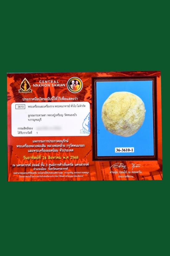 หมายเหตุ : เครื่องรางรายการนี้ทางเวปจียังไม่มีข้อมูลสำหรับออกบัตรรับรองนะครับ หากท่านใดต้องการบัตรรับรองของเวปจี กรุณาผ่านก่อนนะครับ ขอคนพร้อมเท่านั้น จะได้ไม่เป็นการเสียเวลา เสียเงินเปล่า ๆ ทั้งสองฝ่าย ขอบพระคุณพี่ๆทุกท่านที่เมตตาครับ
