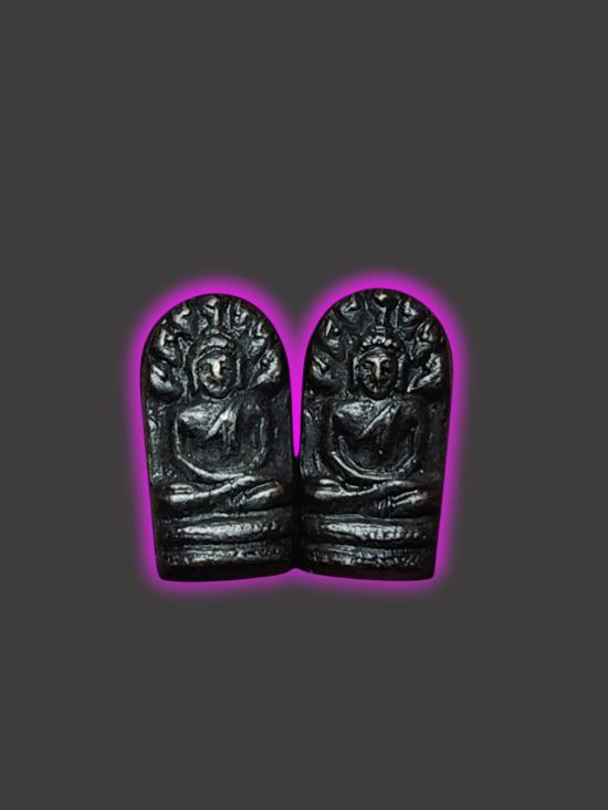 A2483.วัดใจยกคู่ ๒ เหรียญ ปรกใบมะขาม หลวงพ่อกุหลาบ วัดใหญ่สว่างอารมณ์ เนื้อทองแดงรมดำ เคาะเดียวแดง |