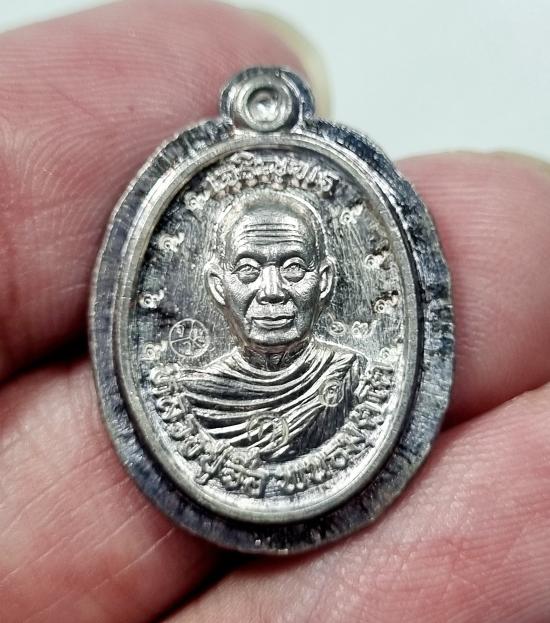 เหรียญเม็ดแตงเจริญพรบน รุ่นแรก ลป.จื่อ เนื้อเงินไม่ตัดปีก9รอบหลังเรียบ หมายเลข67 |