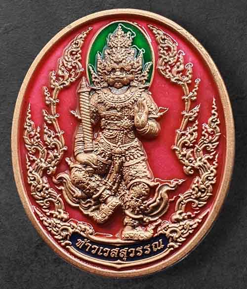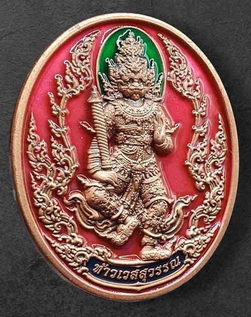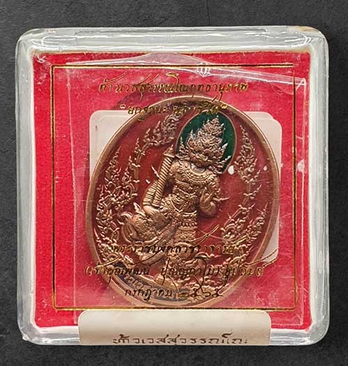 เหรียญท้าวเวสสุวรรณ รุ่น ยกฐานะ พลิกชีวิต เนื้อทองแดงซาติน ลงยาสีชมพู หมายเลข 60 เจ้าคุณพัฒน์ ปุณญกาโม วัดห้วยด้วน จังหวัด นครสวรรค์