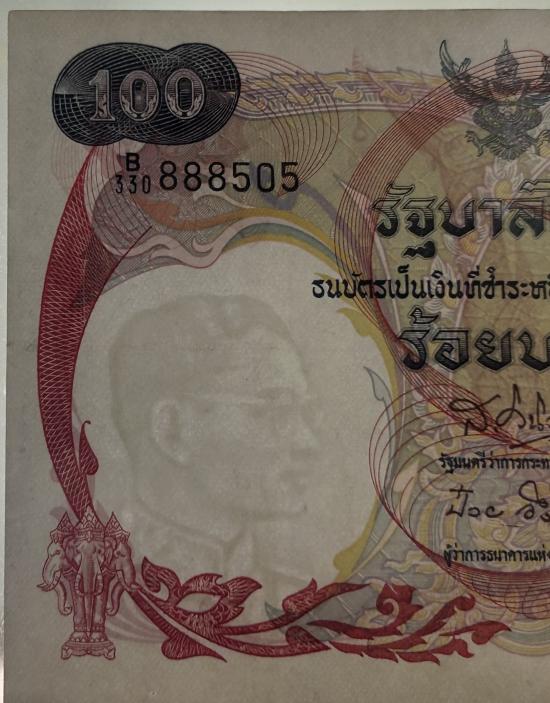 ธนบัตร 100 บาท ร.9 หลังเรือสุพรรณหงษ์ เลขสวยๆ ตอง 888 หน้า ผ่านใช้น้อยๆ |