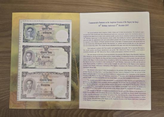ธนบัตรที่ระลึก เฉลิมพระเกียรติเนื่องในโอกาสมหามงคลเฉลิมพระชนมพรรษา 80 พรรษา ชนิดราคา 1 บาท, 5 บาท, 10 บาท (ชนิดไม่ตัดเป็นรายฉบับ)