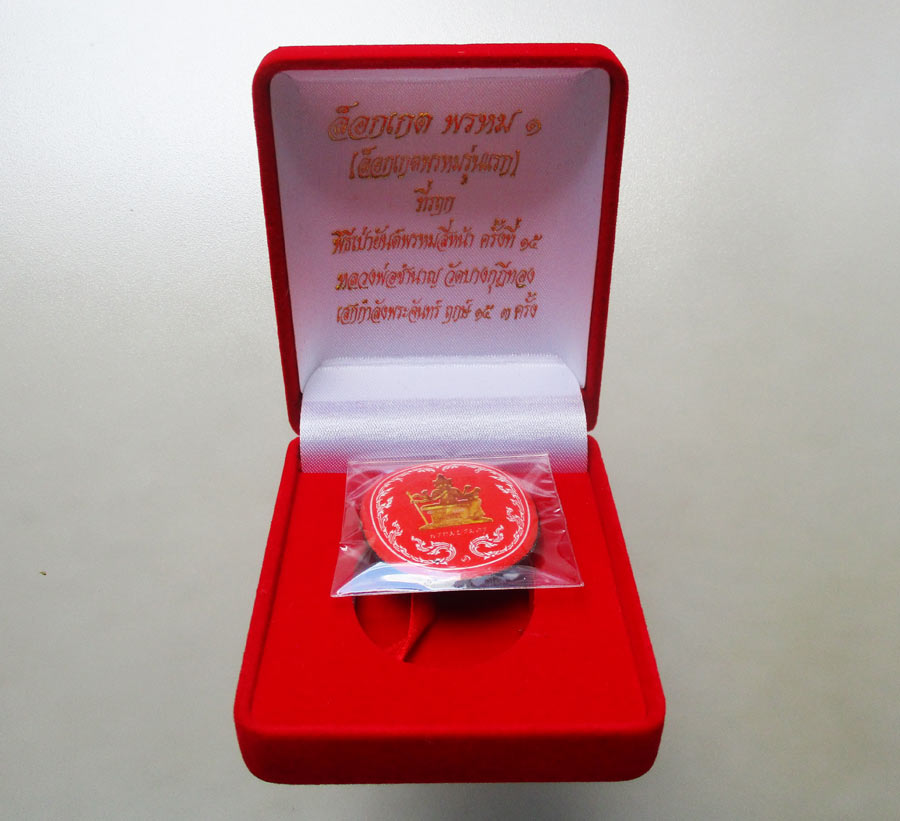 ล๊อกเก็ตพรหม 1 ( ล๊อกเก็ตพรหมรุ่นแรก ) ที่รฤกพิธีเป่ายันต์พรหมสี่หน้าครั้งที่ 15 หลวงพ่อชำนาญ วัดบางกุฎีทอง จ.ปทุมธานี พ.ศ.2558 ขนาดใหญ่ฉากแดง ตะกรุดทอง 1 ดอก เงิน 1 ดอก สภาพเดิมๆพร้อมกล่อง !! |