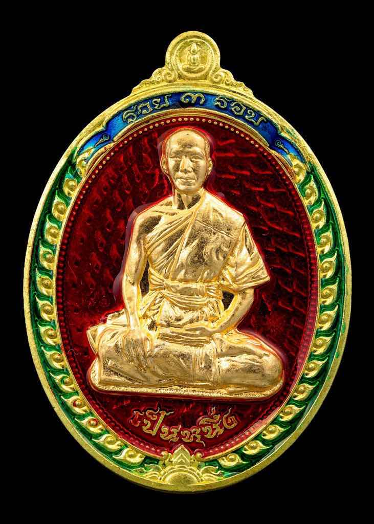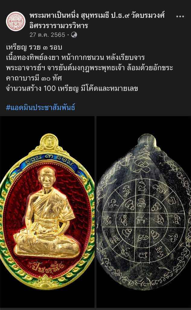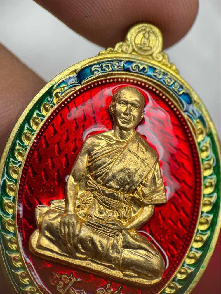 เคาะเดียวแดง.- องค์ดารา 1 ใน 100 เหรียญ เหรียญรวย 3 รอบ พระมหาเป็นหนึ่ง สุนธรเมธี ปธ.๙ วัดบรมวงศ์ อยุธยา เนื้อทองทิพย์ลงยา หน้ากากชนวน หลังจาร ยันต์มงกุฎพระพุทธเจ้า ล้อมด้วยอักขระ คาถาบารมี๓๐ทัศ no.96 |