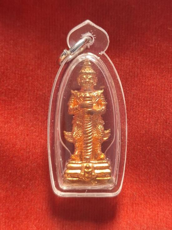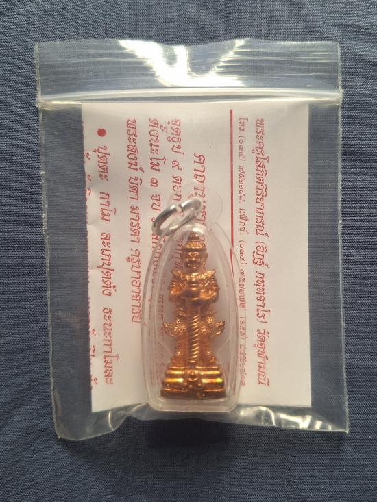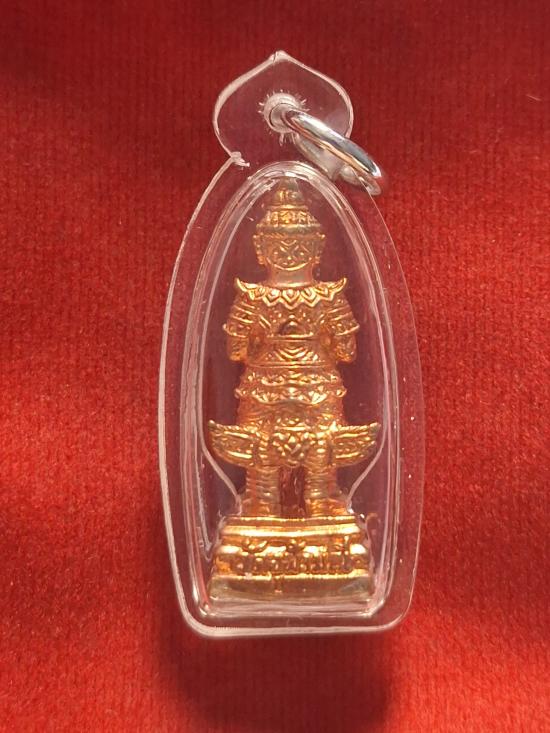 รูปหล่อท้าวเวสสุวรรณ เนื้อทองแดง ปี 2553 ขนาดสูง 3 ซม. ตอกโค๊ด เหล็ง ตรงข้างพญาปุริสาท หลวงพ่ออิฏฐ์ วัดจุฬามณี พร้อมเลี่ยมพลาสติกเดิมและใบคาถาเดิมจากวัด