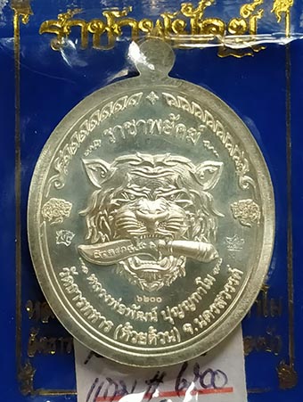 เหรียญหลวงพ่อพัฒน์ วัดห้วยด้วน "รุ่นราชาพยัคฆ์ปี" 2563 เนื้อเงินลายเสือ ลงยาเหลือง-ดำ ลงยาจีวร เลขสวย |