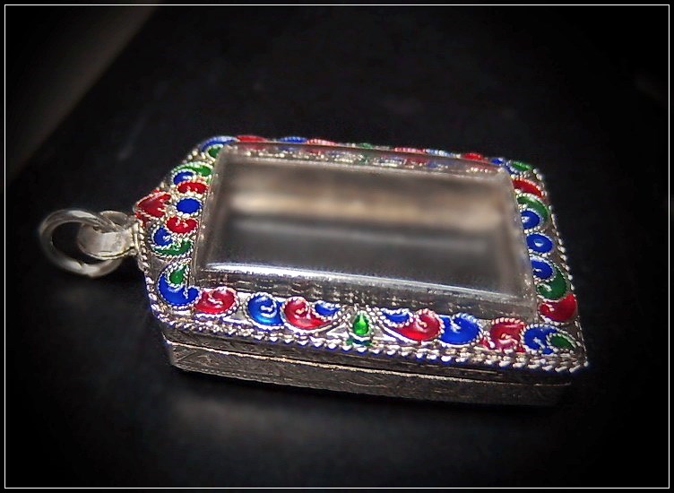 | รายละเอียด | ตลับเงินผสมมือ2ใส่พระสมเด็จลงยาขนาดตามภาพถ่ายเคาะเดียวครับ |