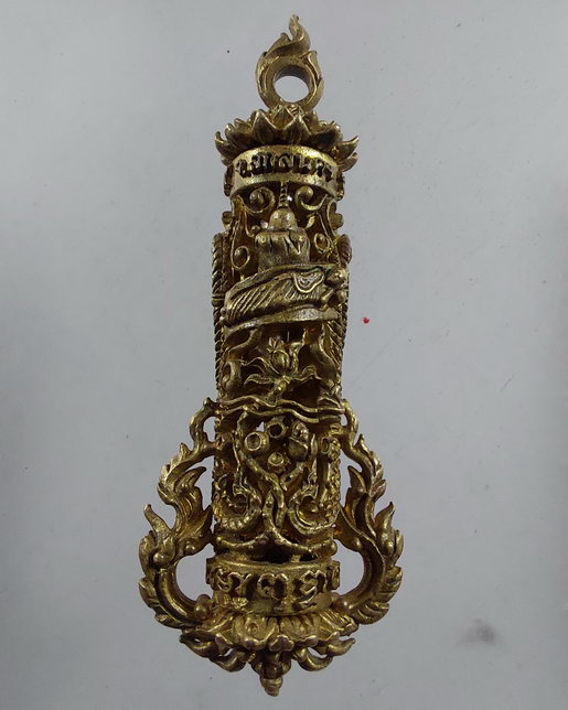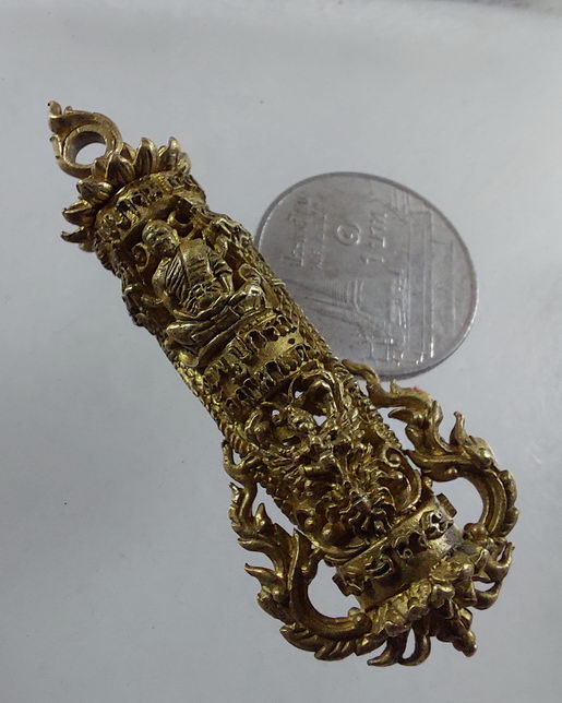 " ตะกรุดหล่อโบราณ สร้างบารมี ๒๕๕๙ หลวงพ่อปกรณ์ วัดถ้ำผาแด่น จ.สกลนคร เนื้อทองระฆ้ง ใส้ตะกรุดเงิน สวยๆครับ "