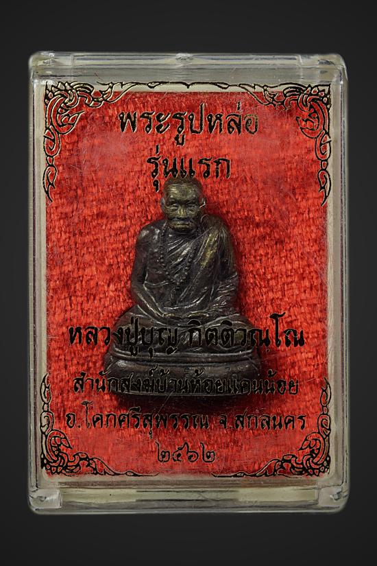 รูปหล่อรุ่นแรก หลวงปู่บุญ กิตติวัณโณ อายุ 103 ปี 75 พรรษา สำนักสงฆ์ห้วยแคนน้อย จังหวัดสกลนคร ปี 2562 ก้นโค๊ดตอกเลข ๒๔๓๕ พร้อมกล่องเดิม (( แดงวัดใจ 120 )) No.1