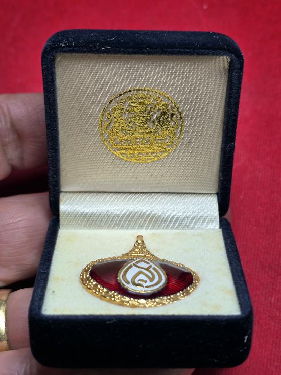 เข็มกลัดสมเด็จย่า ปี 2538 เนื้อกะไหล่ทองลงยาแดง-ขาว สภาพสวยมาก พร้อมกล่องเดิม