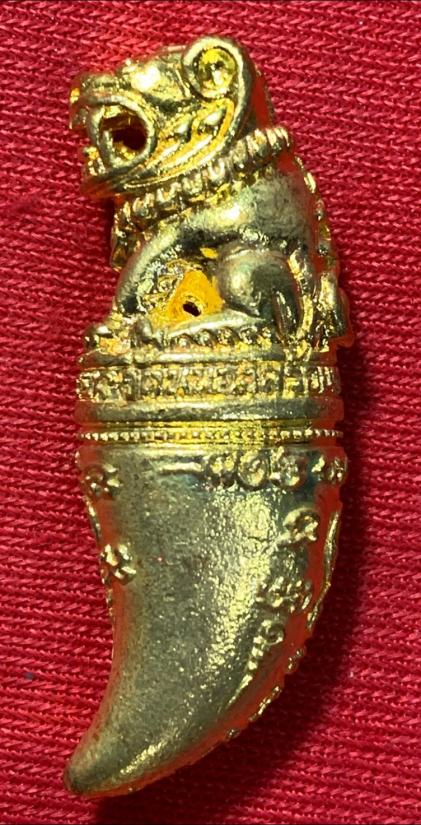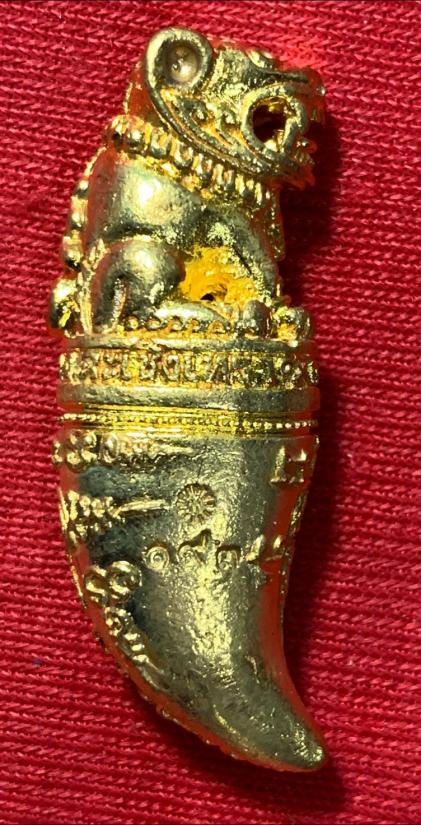 เสือกันภัย (เสือนั่งเขี้ยว) รุ่นเจริญทรัพย์ เนื้อชนวนผิวไฟหัวทอง หลวงพ่อจง วัดหนองสร้อยติ่ง อ.แปลงยาว จ.ฉะเชิงเทรา จัดสร้างปี 2558 |