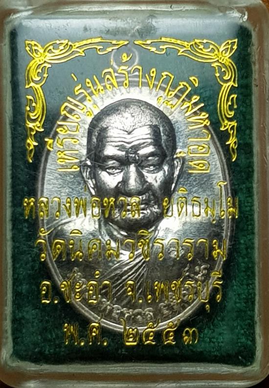 เหรียญกุฏิมหาอุด เนื้อเงิน หลวงพ่อหวล วัดนิคมวชิราราม ปี2553