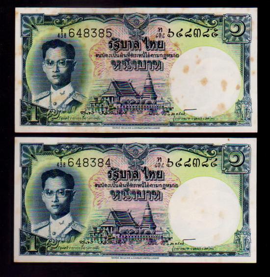 ## ธนบัตร 1 บาท ## โทมัส ## เรียงเลข 2 ฉบับ ## ไม่ผ่านการใช้