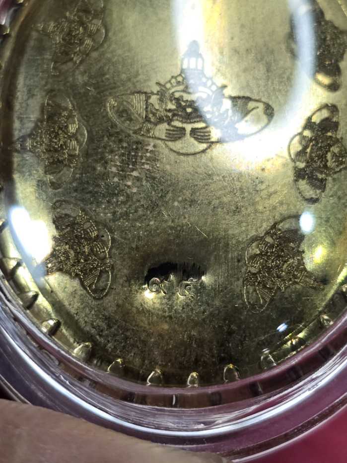 ล็อกเก็ตเหนือดวงฉากทอง หลังทองเหลือง ใส่มวลสาร ตอกราหู รอบ เลข74 (วัดสร้าง) พร้อมเลี่ยมพลาสติกใสกันน้ำ *พระไม่มีกล่อง |