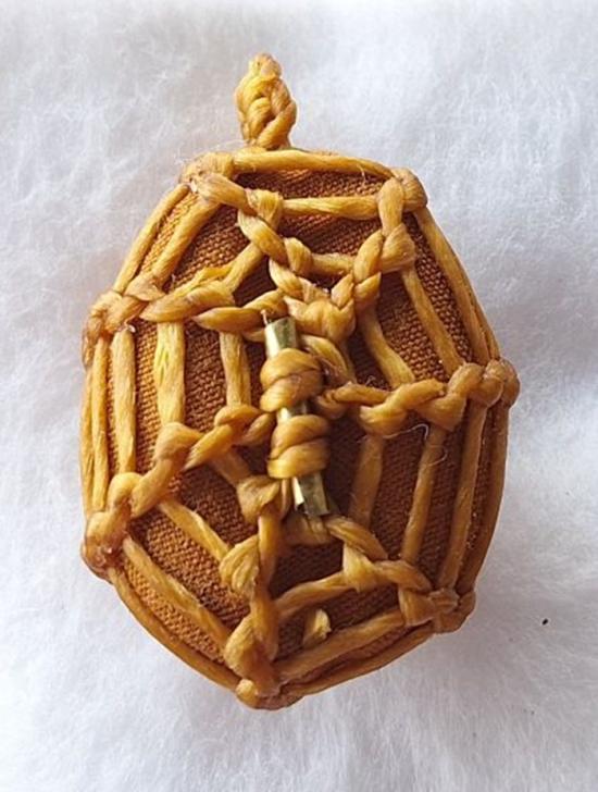 เบี้ยแก้ หุ้มจีวร ถักเชือก หลวงปู่ศิลา วัดโพธิ์ศรีสะอาด มีแผ่นเลขกำกับ ฝังตะกรุดทองเหลือง พร้อมใบคาถา ปี2567