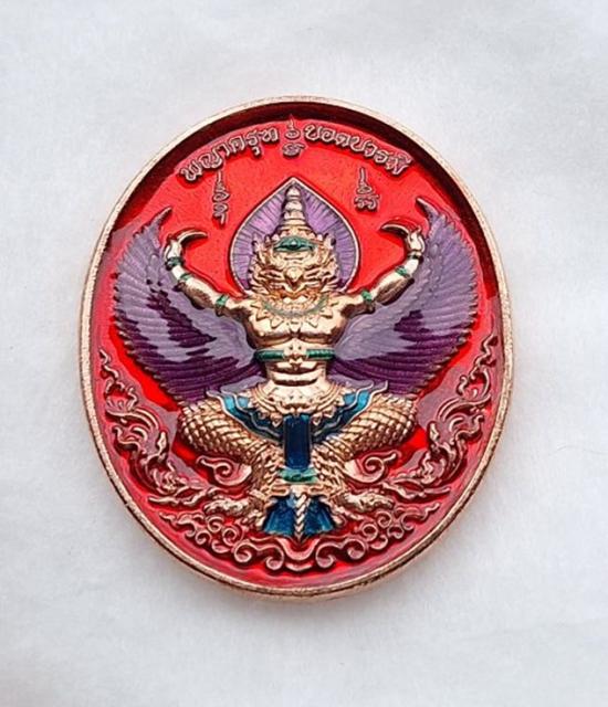 เหรียญพญาครุฑ หลวงปู่ศิลา วัดโพธิ์ศรีสะอาด รุ่นยอดบารมี ลังนำฤกษ์ เนื้อทองแดง ลงยาทรงเครื่อง ลงยาปีกครุฑ พื้นแดง No.74 |