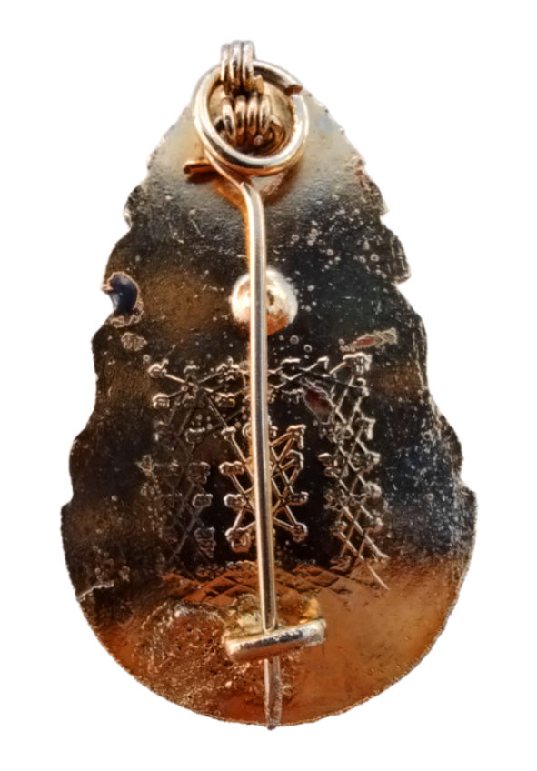 - ล็อคเก็ตเข็มกลัดรูปถ่าย หลังยันต์มงกุฎเพชร รุ่นแรก เนื้อทองเหลืองกะไหล่ทองลงยา ปี๒๕๒๘ ตัวหนังสือกลาง