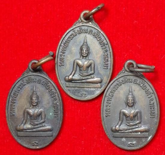เหรียญรุ่นแรก หลวงพ่อพระนั่งดิน จ.พะเยา ปี2518 เป็นเหรียญสร้างย้อนยุคปี2538 รุ่นพิเศษ มีมาทั้งหมด3เหรียญ สภาพสวยมากๆและมาพร้อมห่วงเดิมๆด้วยนะครับ |