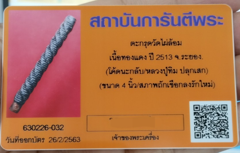 ตะกรุดหลวงปู่ทิม ออกวัดไผ่ล้อม พร้อมบัตรรับรอง |