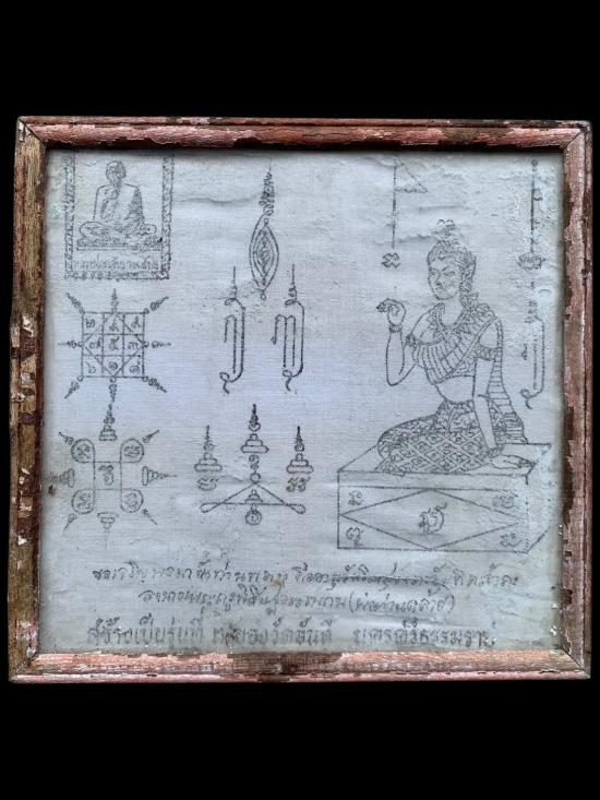 ผ้ายันต์ นางกวัก พ่อท่านคล้าย รุ่น 3 ออกวัดจันดี พร้อมกรอบเก่าคลาสสิก |