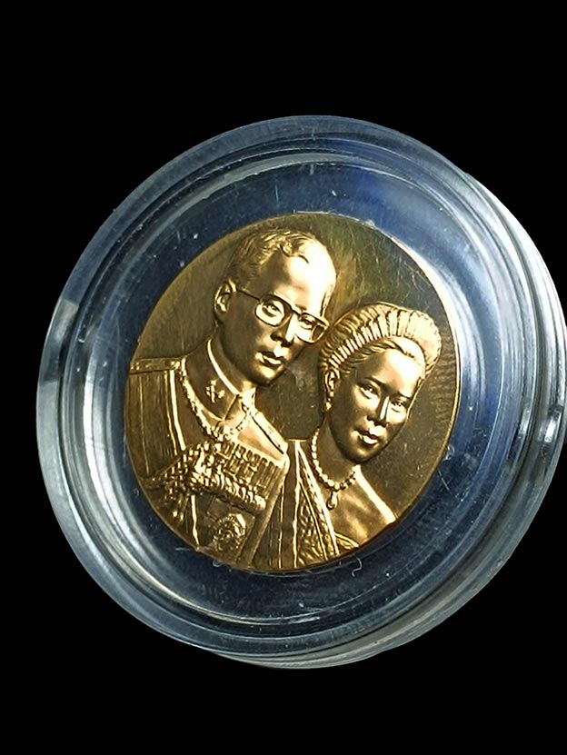 เหรียญพระราชทาน เหรียญในหลวงคู่พระราชินี (ในหลวง ร.9-พระราชินี) ด้านหลังอักษรคำว่า ## พระราชทาน ## ปี พ.ศ.2545 สภาพสวย หายาก